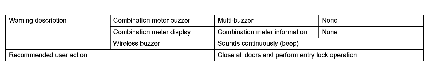 d. If the key is located inside of the cabin, the door lock function will not operate and the alarm buzzer (beep sound) will sound for 2 seconds.