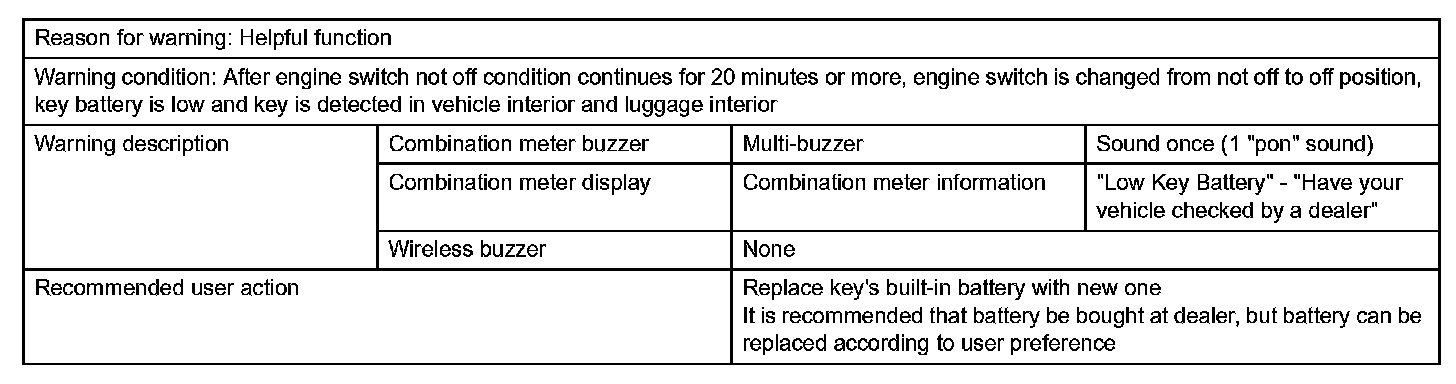 Key battery low warning