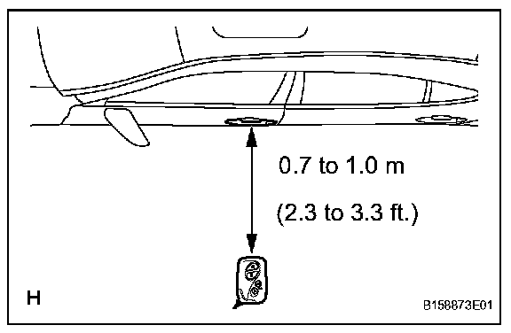 - Hold the key at the same height as the door's outside handle (0.7 to 1.0 m (2.3 to 2.6 ft.)). Pay attention to the direction of the key in the illustration.