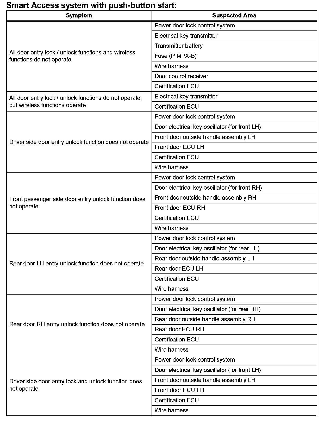 Problem Symptoms Table - Smart Access System With Push-button Start (Part 1):