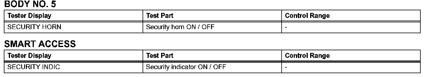 NOTE: When a Body No. 5 (front light ECU) related vehicle switch is ON, Active Test items related to the vehicle switch are prohibited (double operation prohibition). Check that the vehicle switches are OFF before performing Active Tests.