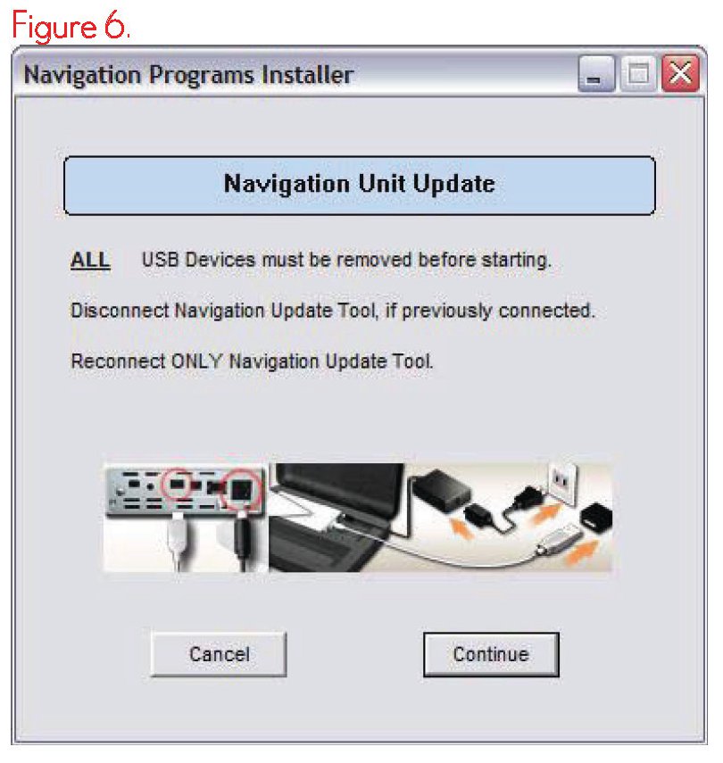 1. Connect the Navigation Update Tool to vehicle. (Tool MUST be disconnected from PC).