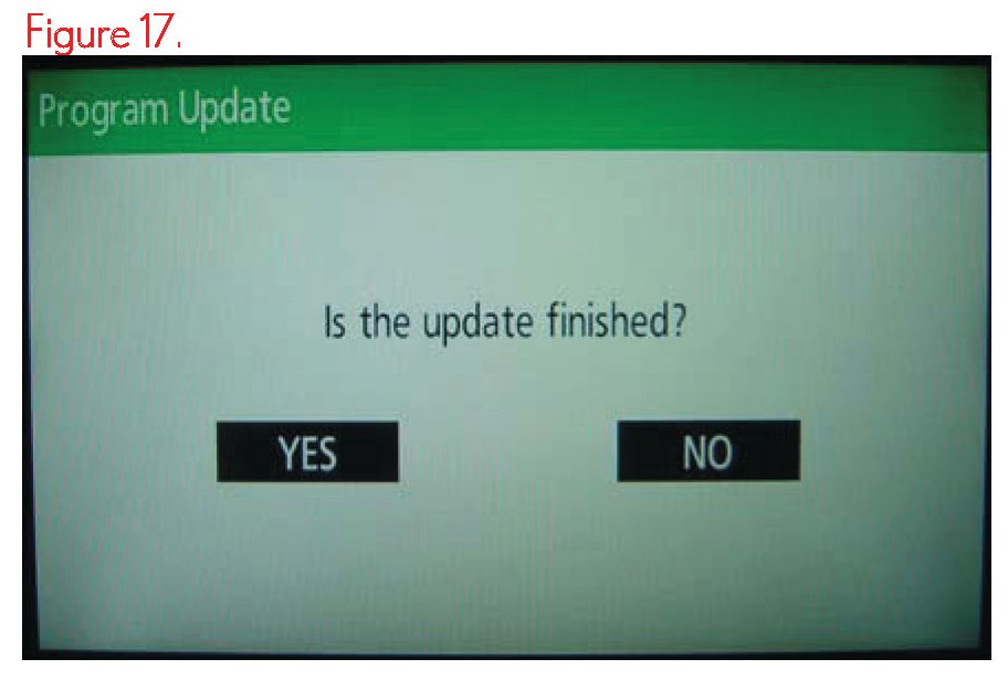 10. After about 1 minute, if the update was successful the display will indicate "Updating Complete" at the top of the screen, press OK to continue.