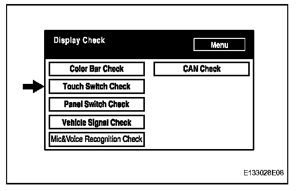 a. Select "Touch Switch Check" from the "Display Check" screen.