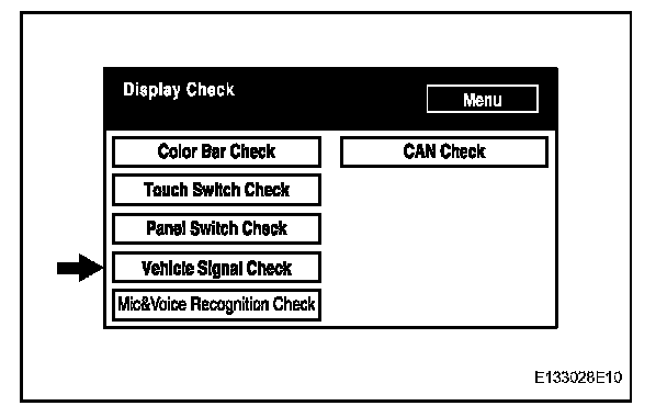 a. Select "Vehicle Signal Check" from the "Display Check" screen.