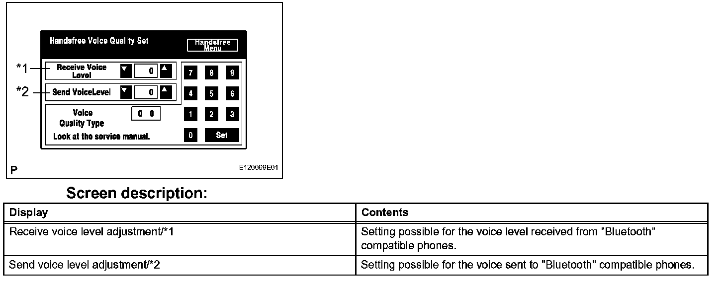 a. Select "Handsfree Voice Quality Set" from the ""Bluetooth" Handsfree Check Menu" screen.