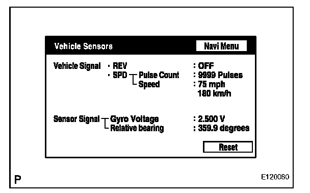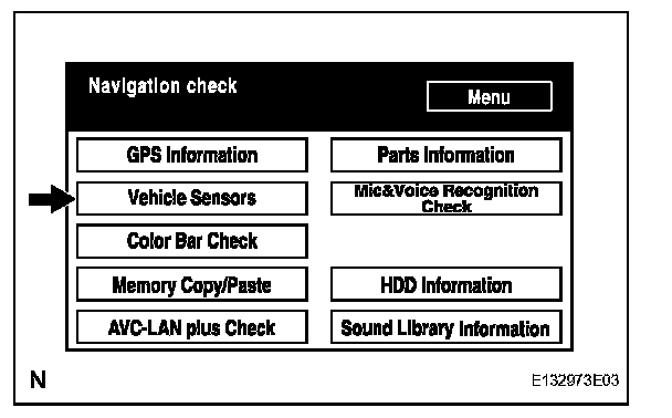 a. Select "Vehicle Sensors" from the "Navigation check" screen.