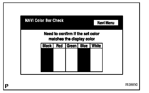 b. Check each color of the color bar when the "NAVI Color Bar Check" screen is displayed.