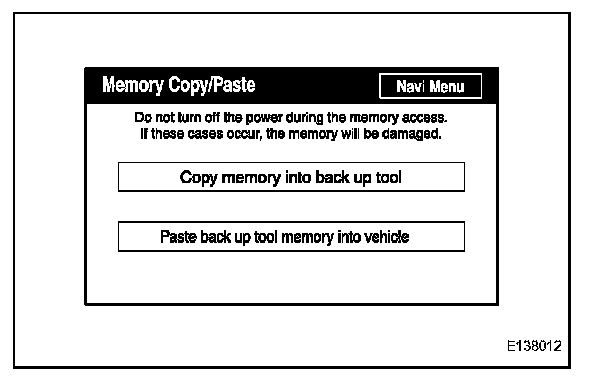 a. Select "Memory Copy/Paste" from "Navigation check" screen.