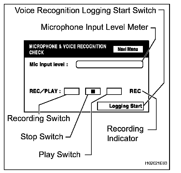 a. Select "Mic & Voice Recognition Check" on the "Navigation check" screen to display the "MICROPHONE & VOICE RECOGNITION CHECK" screen.