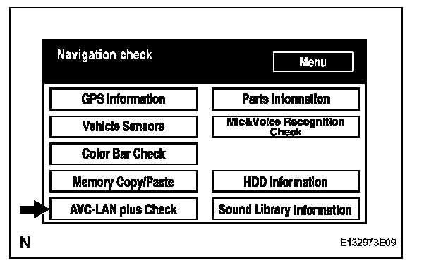 a. Select "AVC-LAN plus Check" from the "Navigation check" screen.