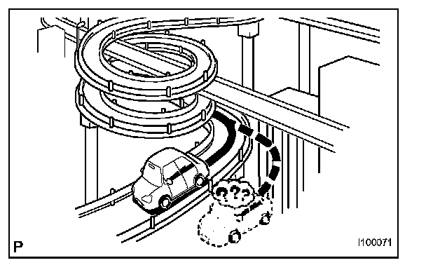 8. When the engine switch is turned on (ACC or IG) on a turntable while parking, the current vehicle position mark may not point in the correct direction. The same will occur when the vehicle comes out of parking.