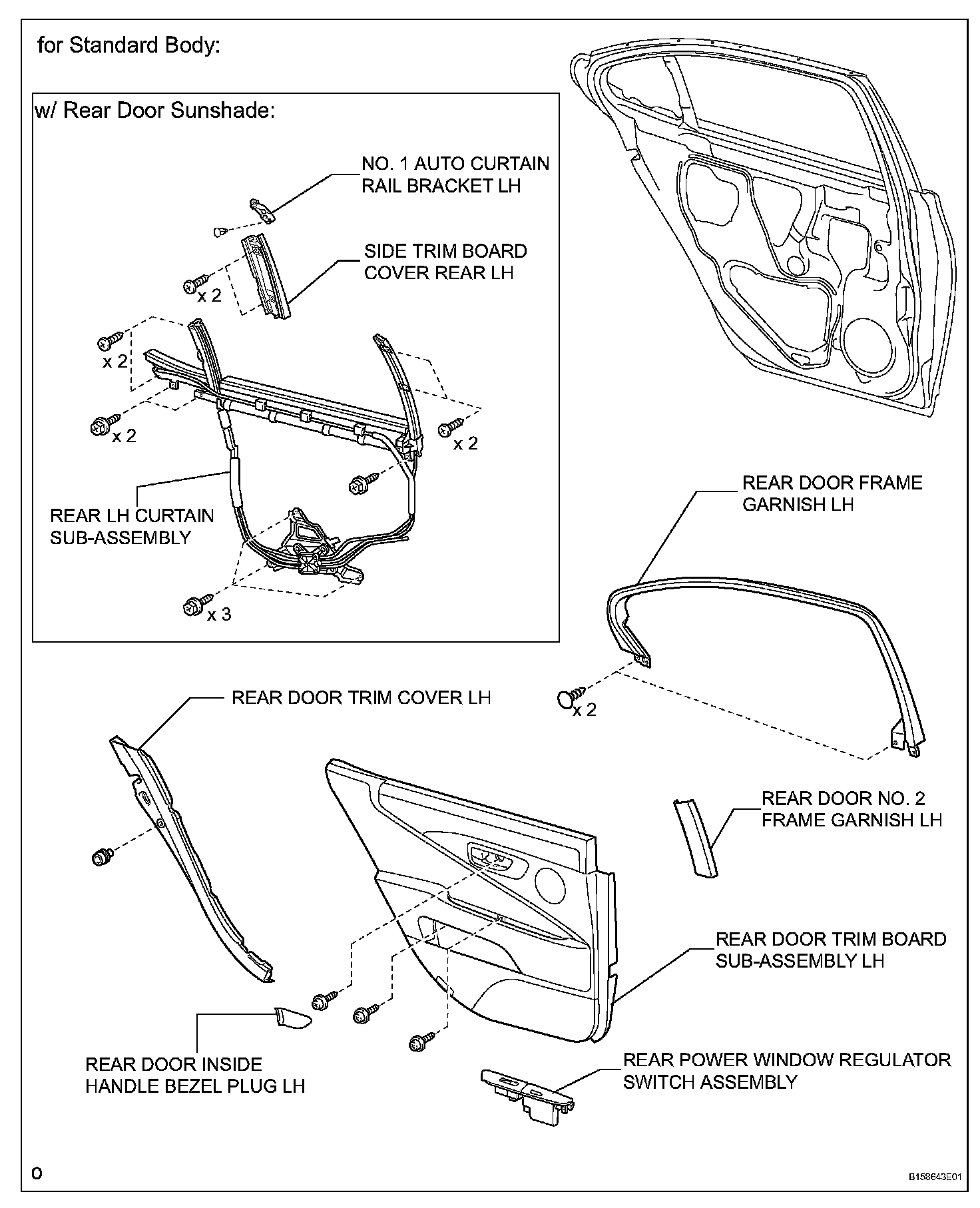 9. REMOVE REAR LH CURTAIN SUB-ASSEMBLY (w/ Rear Door Sunshade)