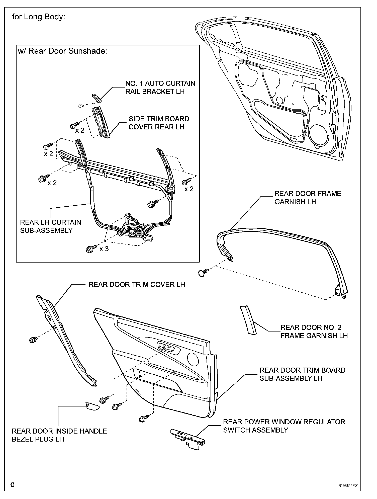 11. REMOVE SIDE TRIM BOARD COVER REAR LH (w/ Rear Door Sunshade)