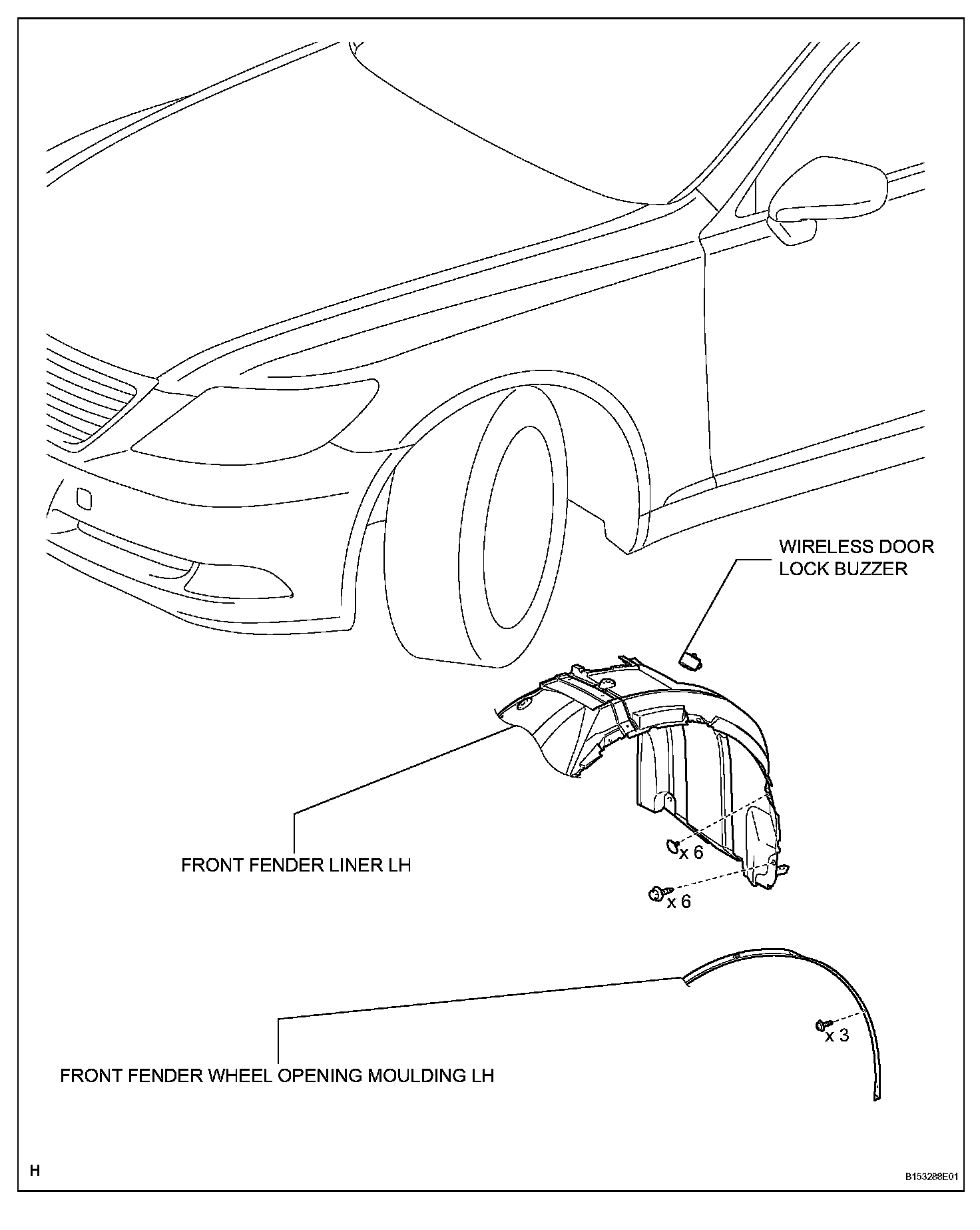 1. REMOVE FRONT FENDER WHEEL OPENING MOULDING LH