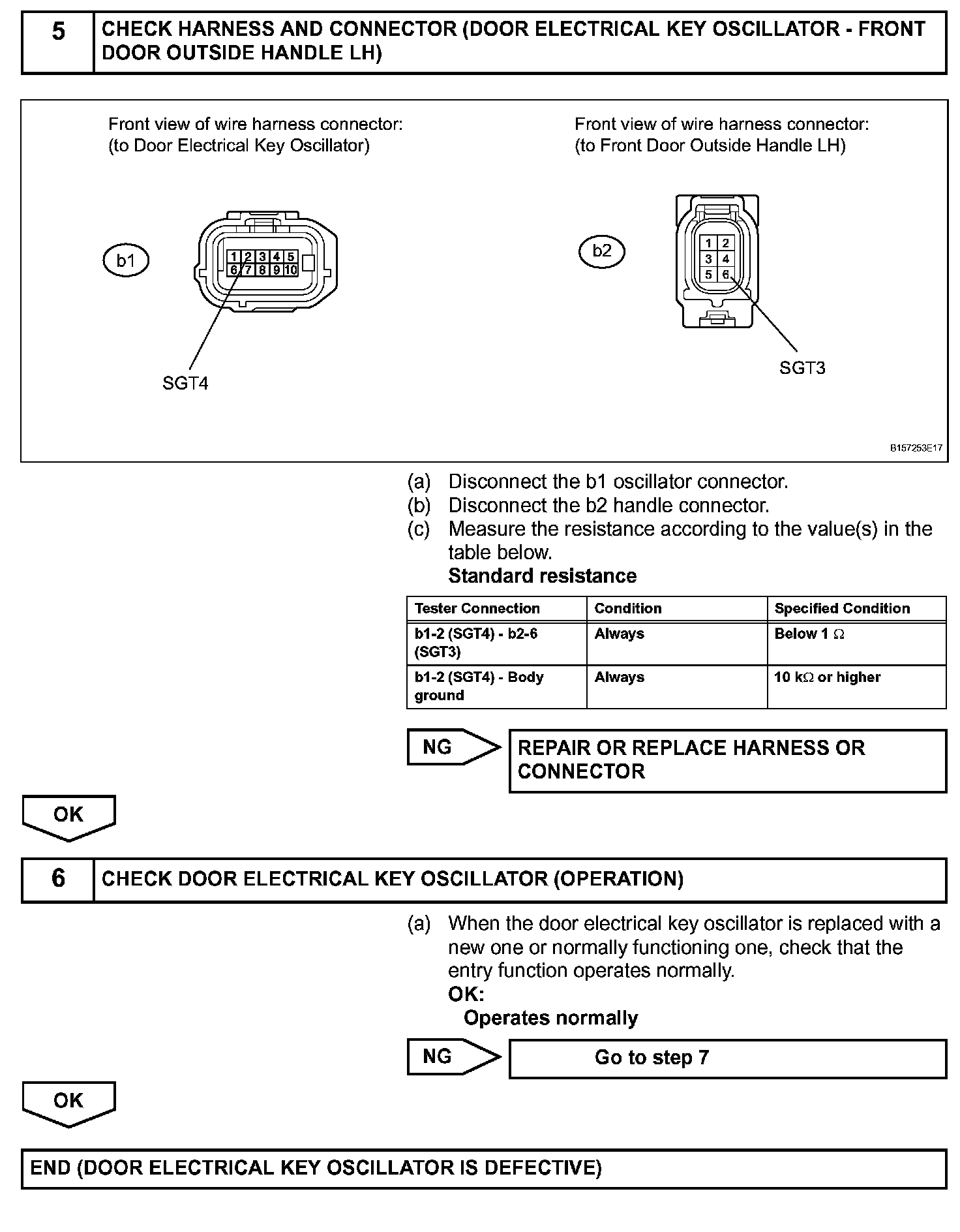 If the driver door entry unlock function does not operate but the entry lock operation operates, the communication line between the vehicle and electrical key transmitter is normal. Either of the following may have occurred: 1) the door outside handle touch sensor is malfunctioning; or 2) the front door ECU LH receives the door outside handle touch sensor ON signal, but is unable to send the signal to the certification ECU through CAN communication.