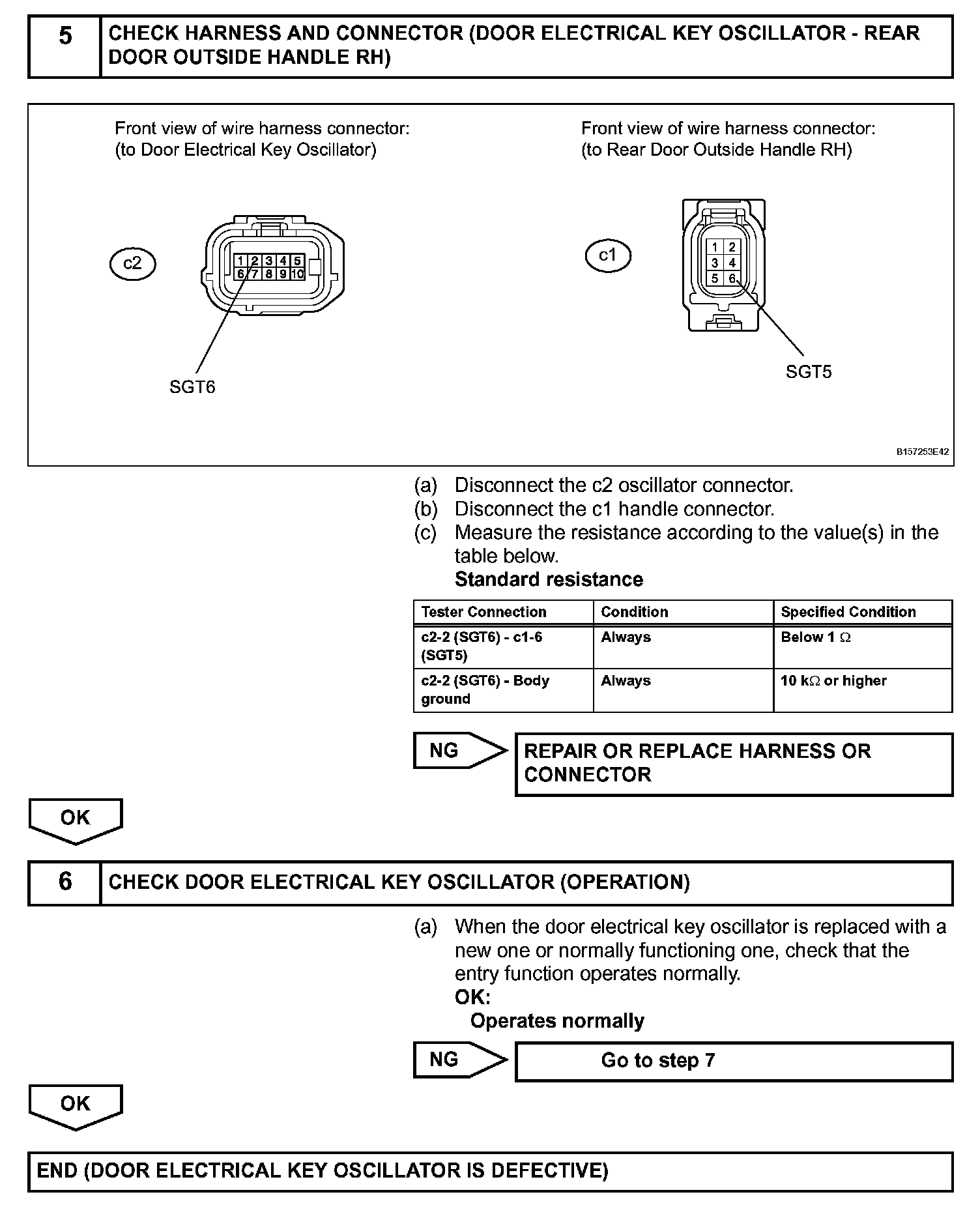 If the rear right door entry unlock function does not operate but the entry lock operation operates, the communication line between the vehicle and electrical key transmitter is normal. Either of the following may have occurred: 1) the door outside handle touch sensor is malfunctioning; or 2) the rear door ECU RH receives the door outside handle touch sensor ON signal, but is unable to send the signal to the certification ECU through CAN communication.
