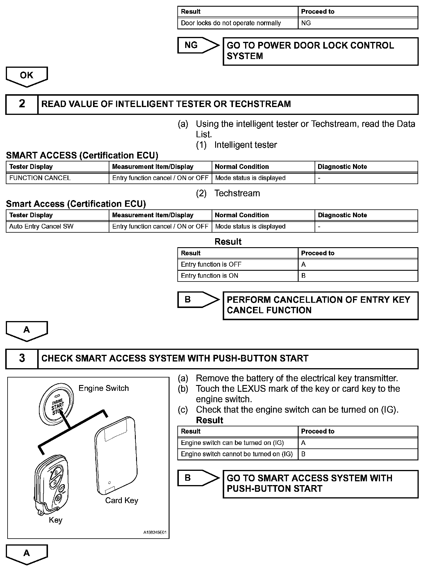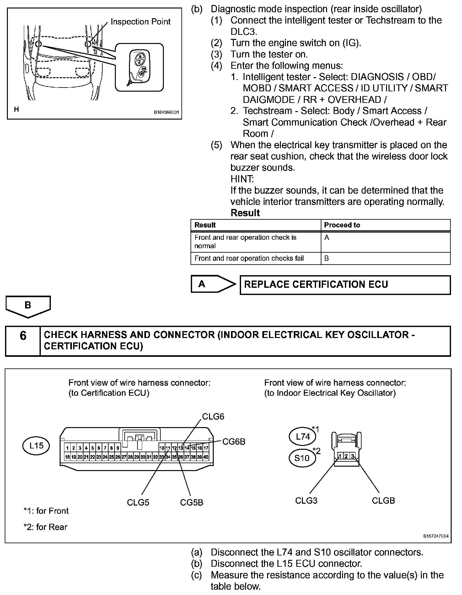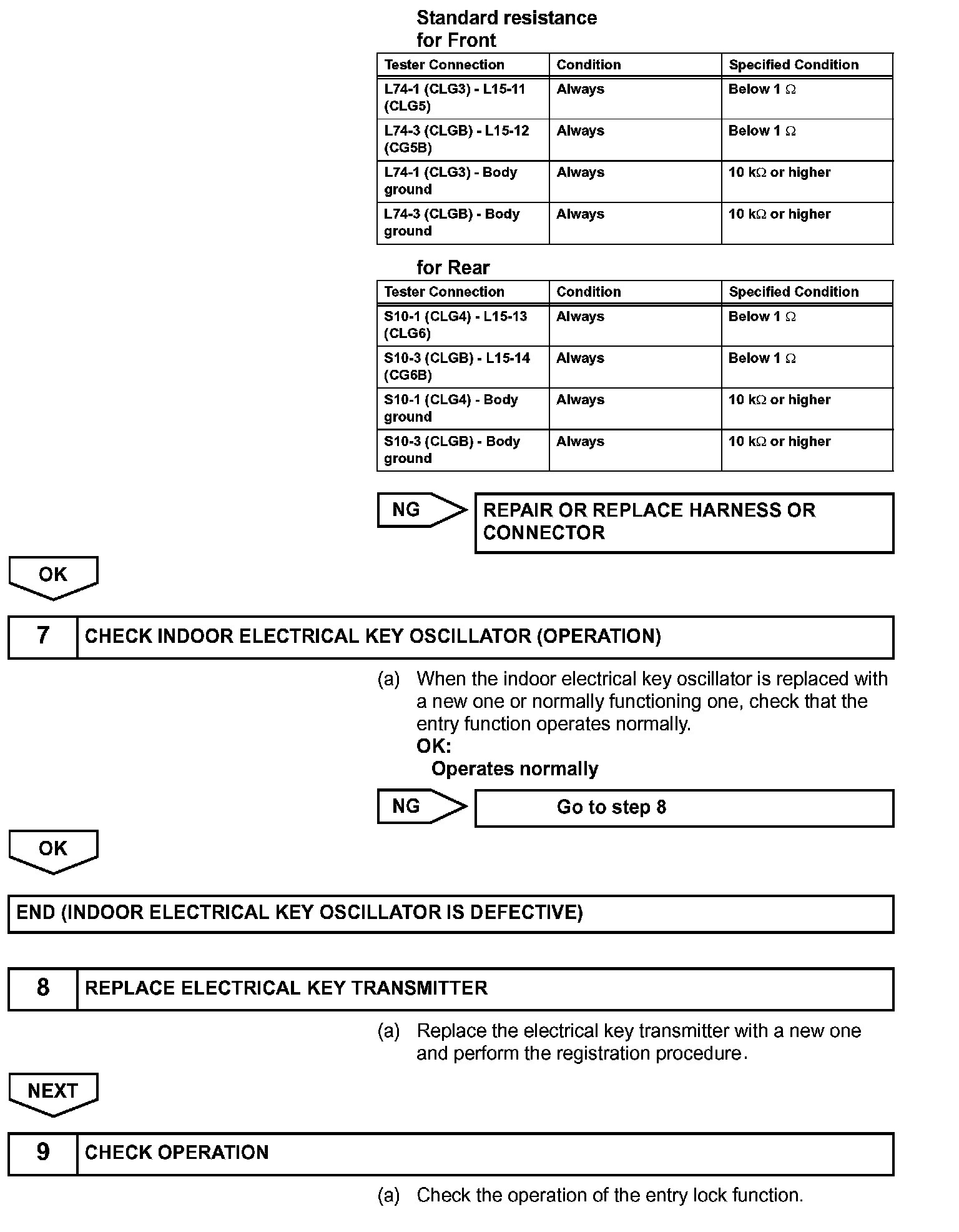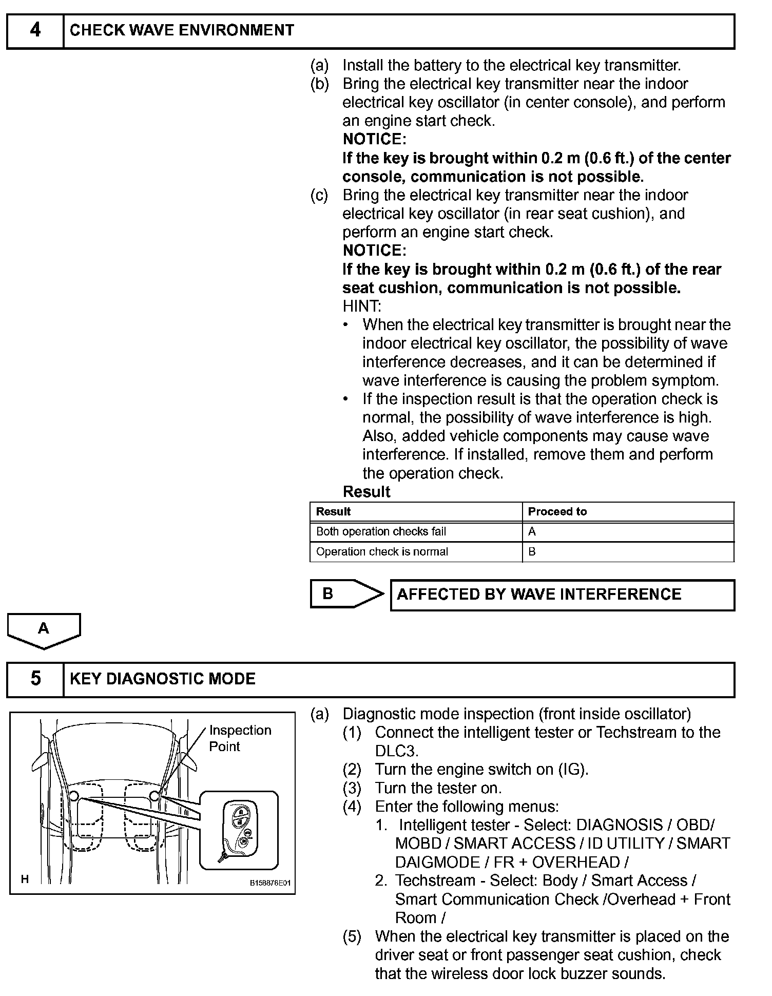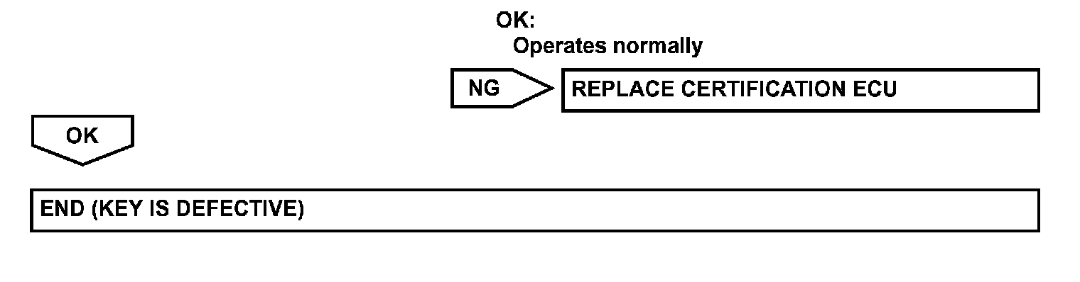 If the room oscillator does not recognize key, either of the following may be the cause: 1) communication between the indoor electrical key oscillator (for front) and electrical key transmitter cannot be performed; or 2) communication between the indoor electrical key oscillator (for rear) and electrical key transmitter cannot be performed.