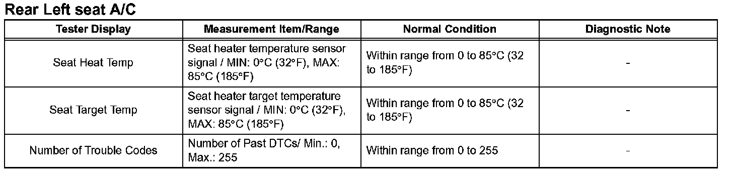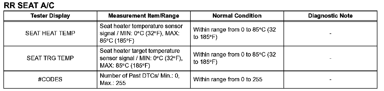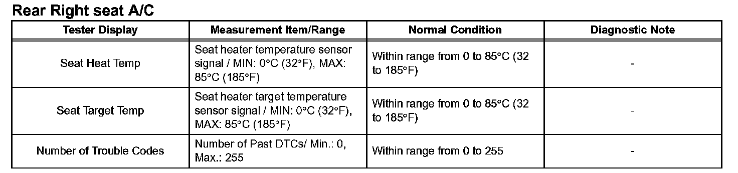 NOTICE: In the table below, the values listed under "Normal Condition" are reference values. Do not depend solely on these reference values when deciding whether a part is faulty or not.