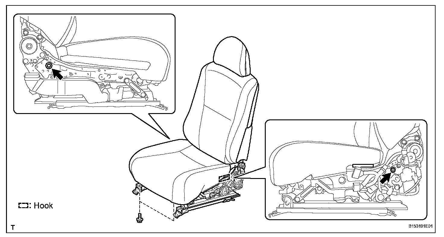 d. Detach the hook and remove the 4 bolts and seat cushion assembly.
