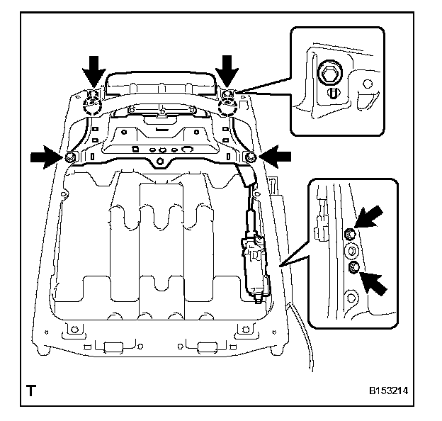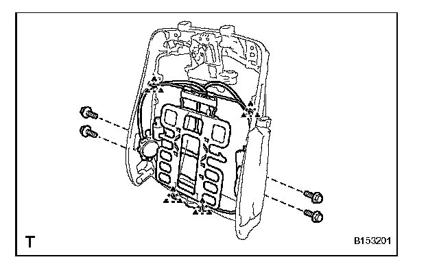 b. Remove the 4 bolts and seatback frame.