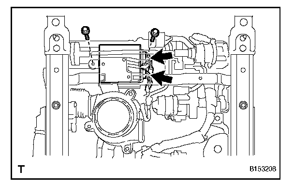 3. Remove the wire harness clamp and disconnect the 2 connectors.