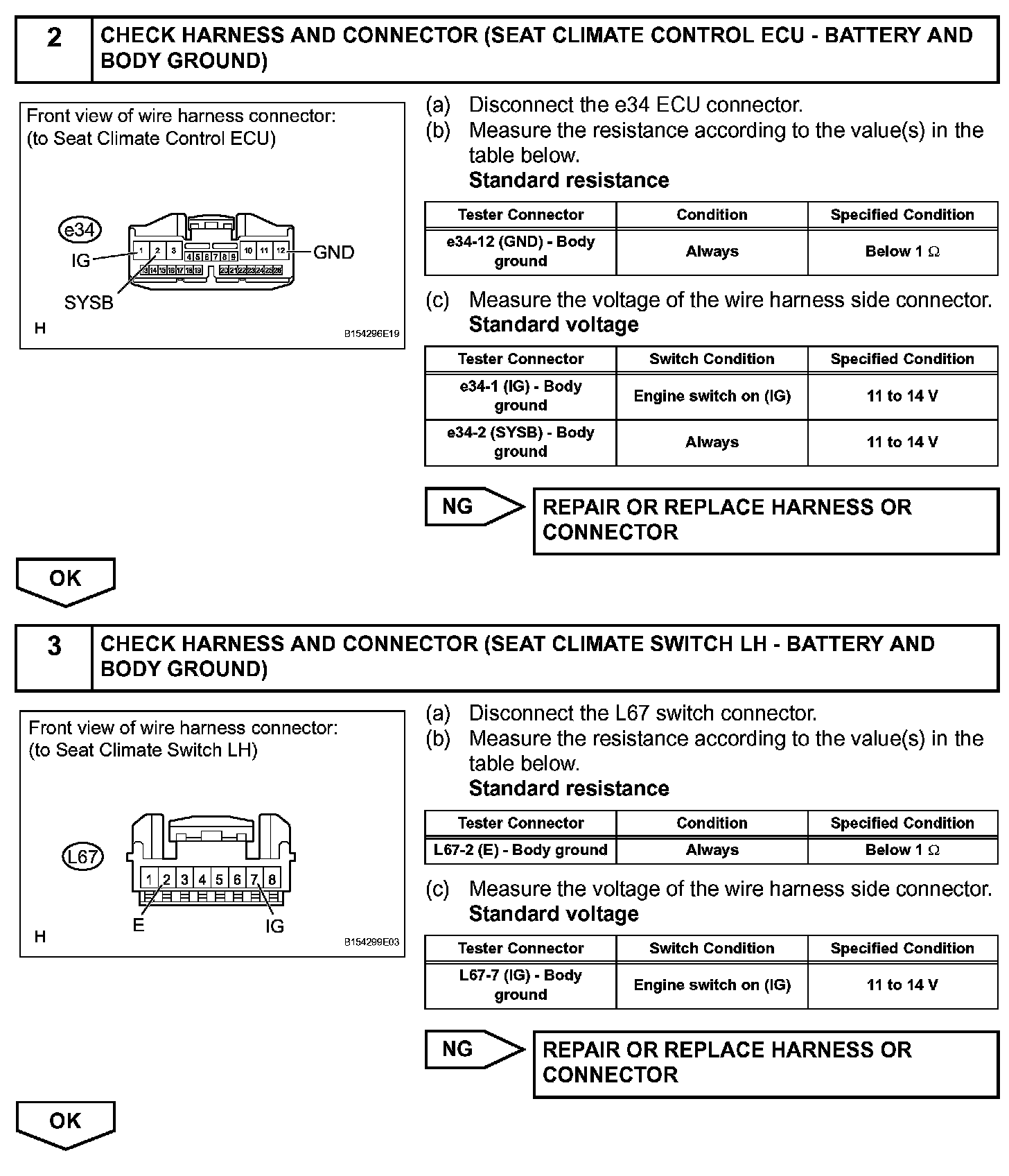 When the seat climate switch is operated, the seat climate control ECU receives the signal and operates the air seat.