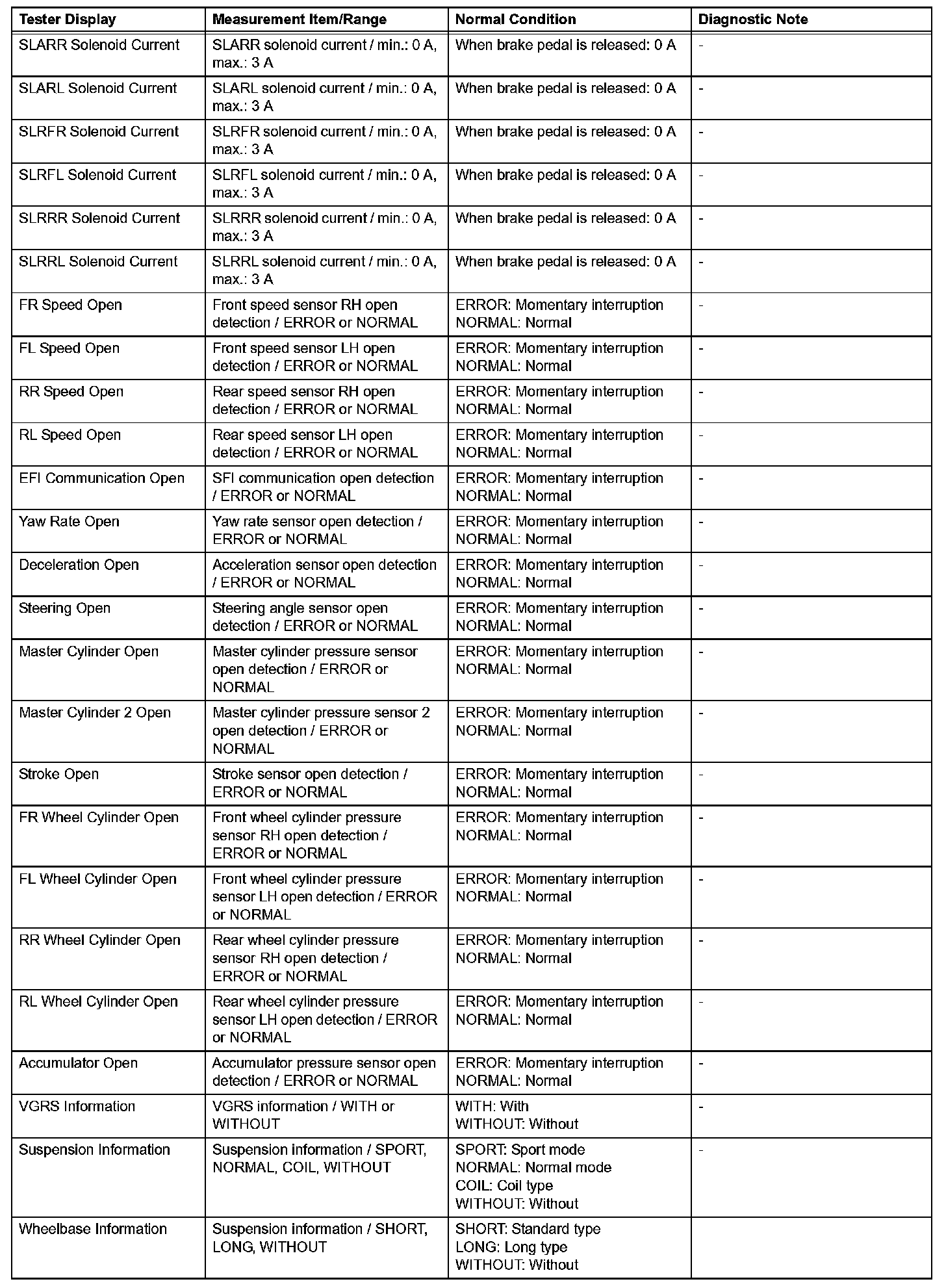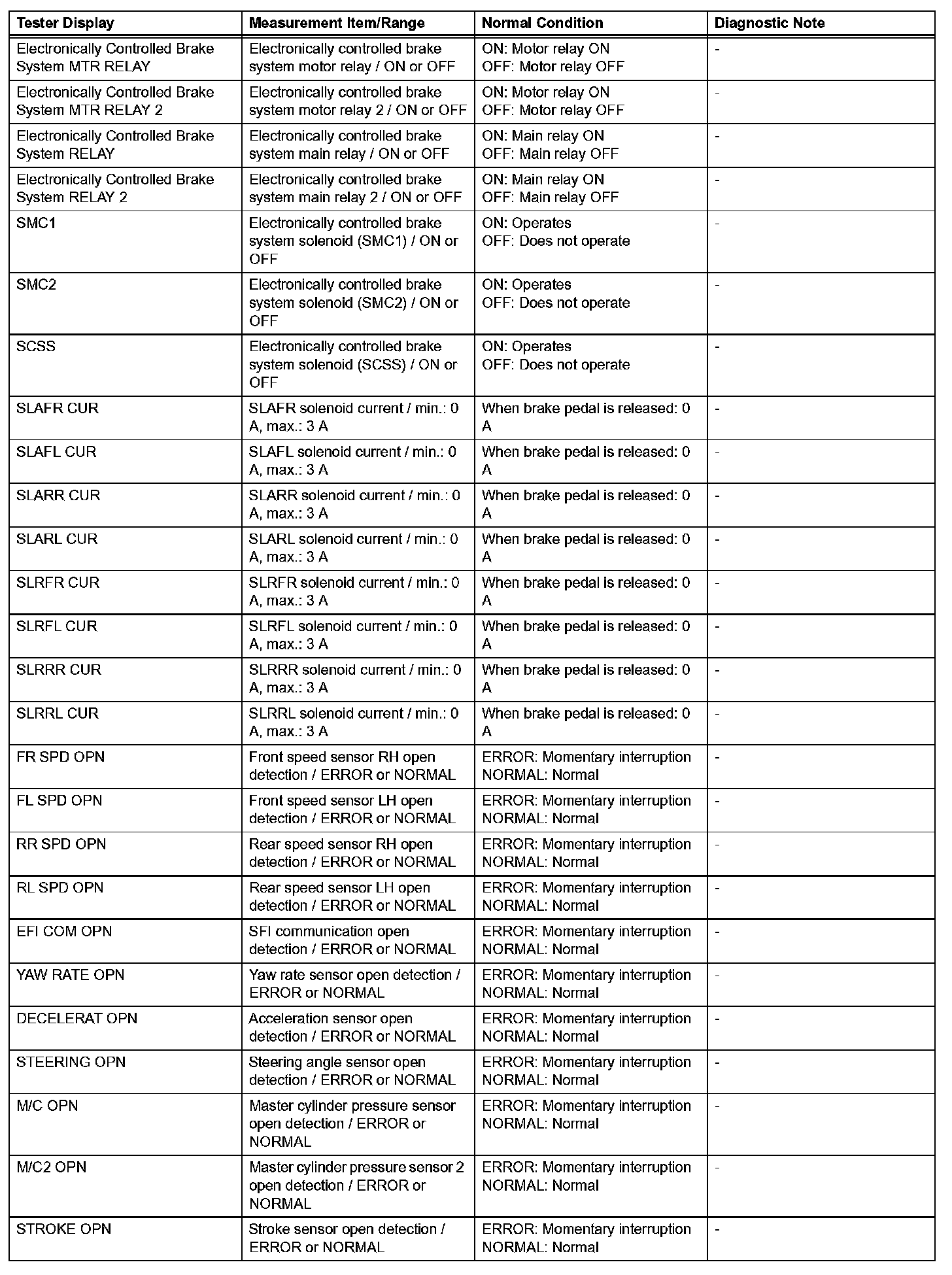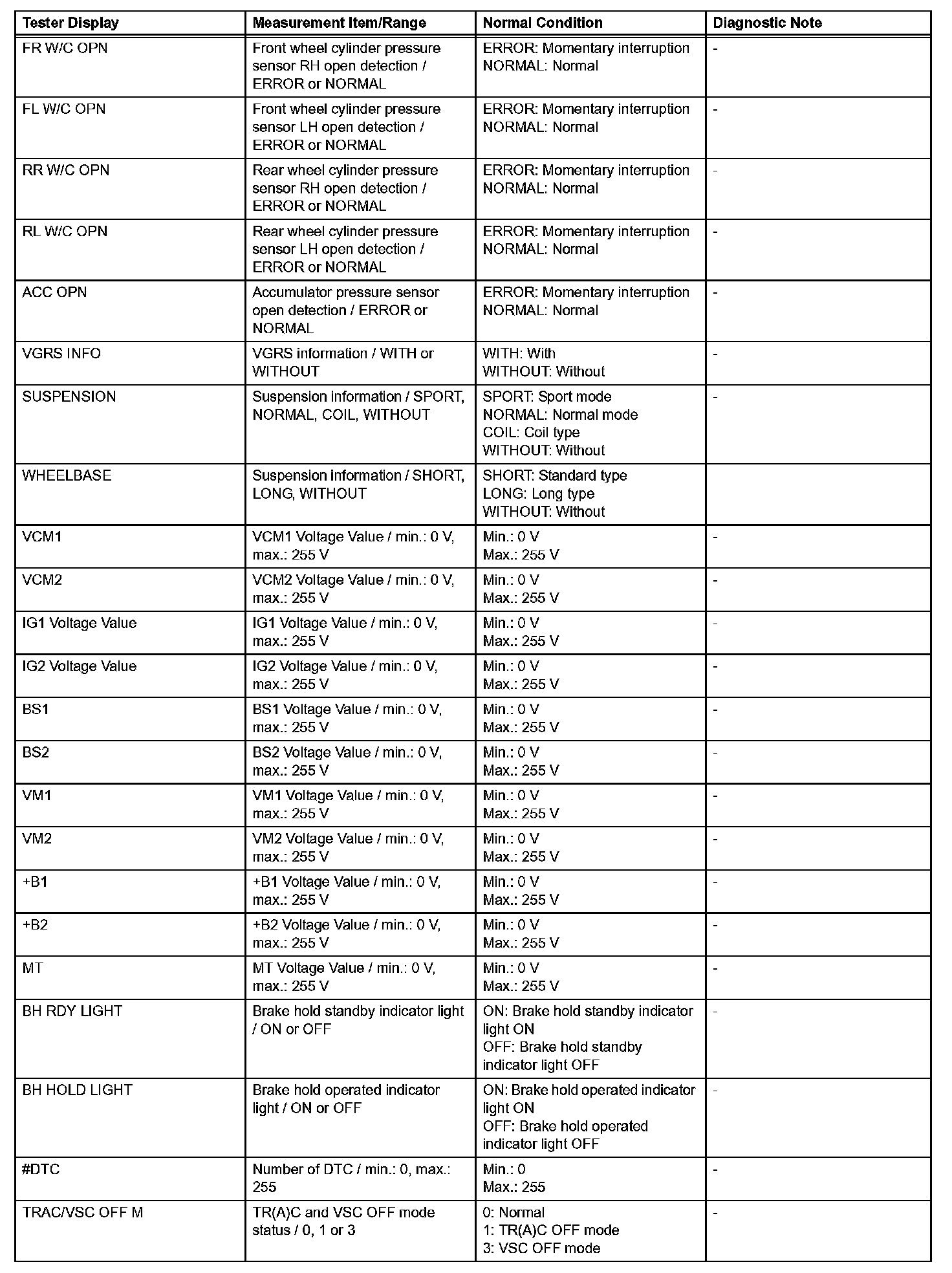 READ DATA LISTHINT: Using the intelligent tester or Techstream to read the Data List allows the values or states of switches, sensor, actuators and other items to be read without removing any parts. This non-intrusive inspection can be very useful because intermittent conditions or signals may be discovered before parts or wiring is disturbed. Reading the Data List information early in troubleshooting is one way to save diagnostic time.