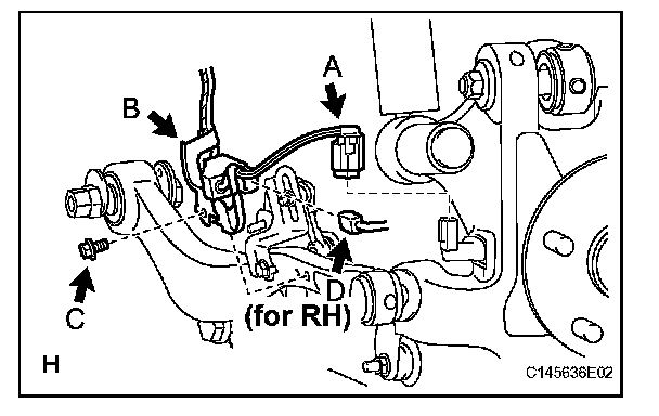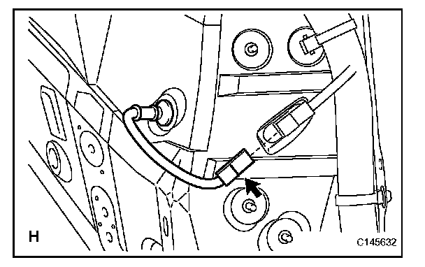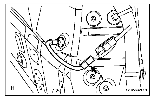 Disconnect the pad wear indicator connector (labeled H).