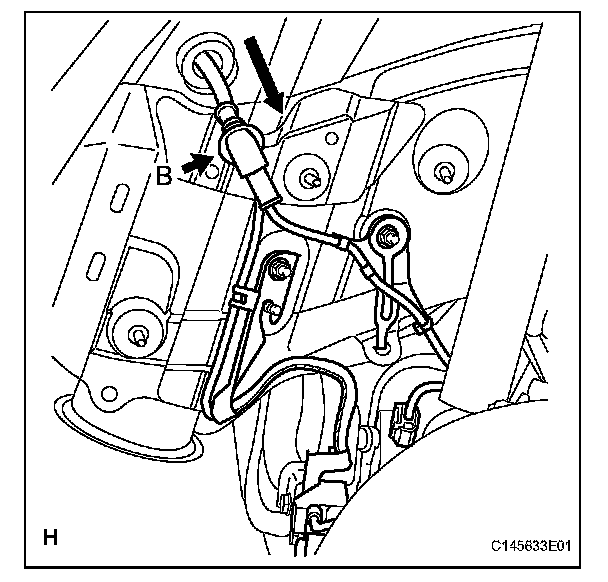 b. Disconnect the grommet (labeled B) of the speed sensor wire from the hole of the wheel house.
