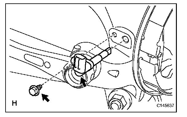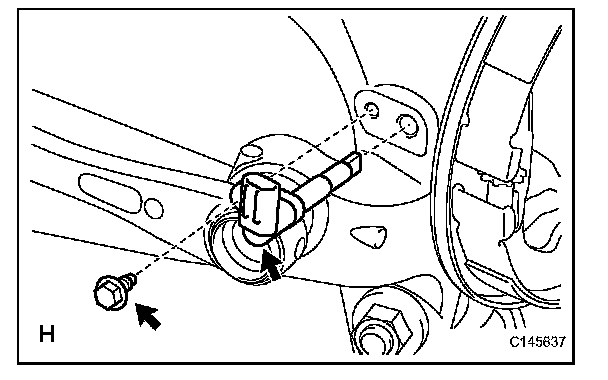 - The rear speed sensor is easily damaged. When installing the rear speed sensor to the rear axle hub RH, do not use excessive force to rotate and install it.