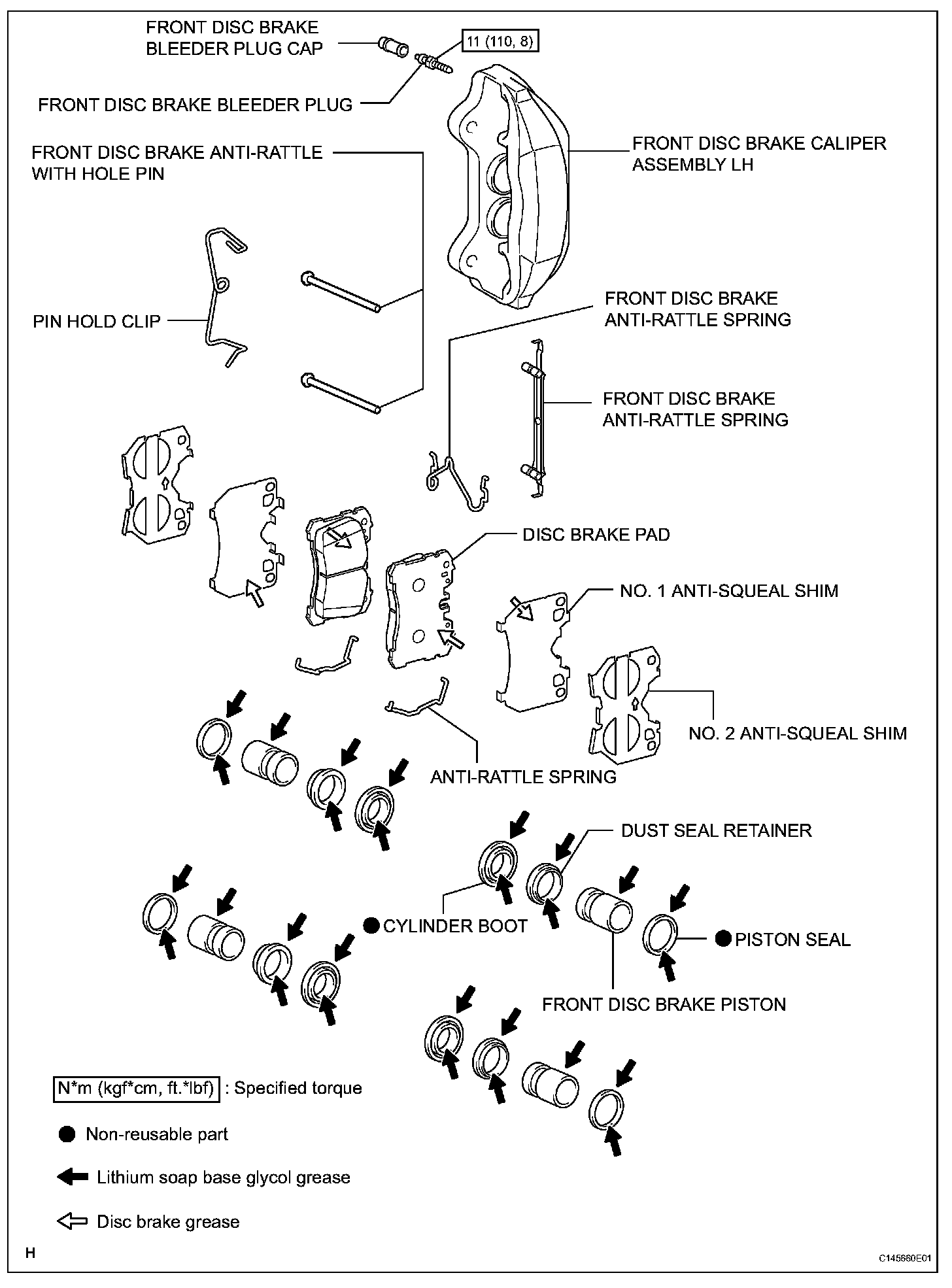 (a) Apply lithium soap base glycol grease to the 4 front disc brake pistons and 4 new cylinder boots.