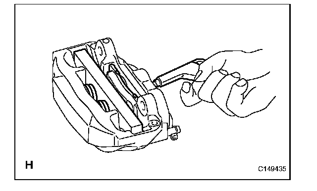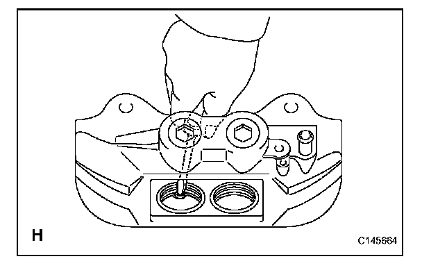 (e) Temporarily install the 2 disc brake pistons that were removed. Then install the disc brake pad to the side in which the 2 disc brake pistons were temporarily installed.