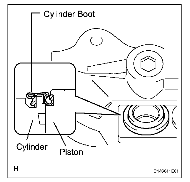 ^ Install the cylinder boot securely to the grooves of the cylinder and piston.