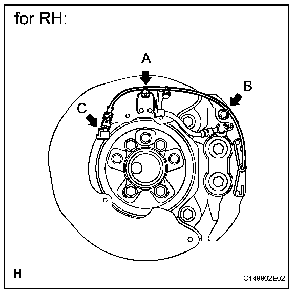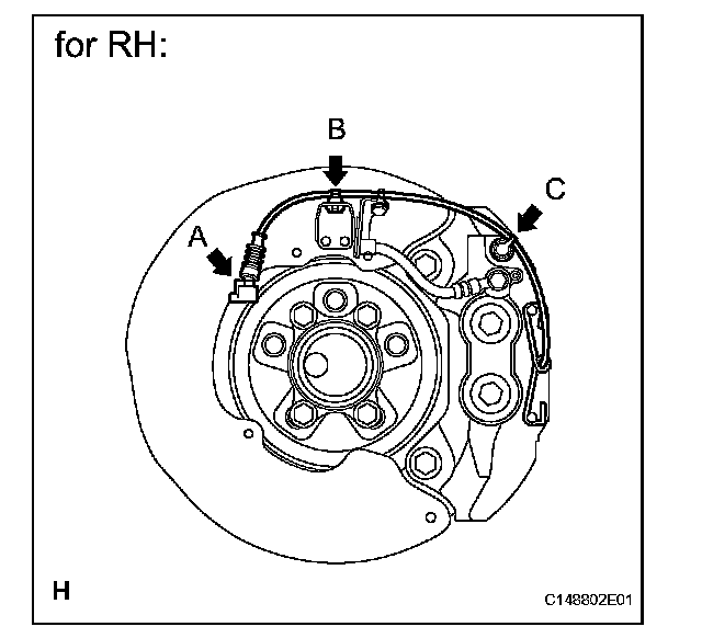 (3) Connect the pad wear indicator wire connector (labeled C).