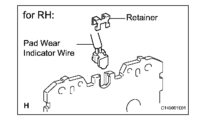 (1) Install the pad wear indicator wire and a new retainer to the inner pad.