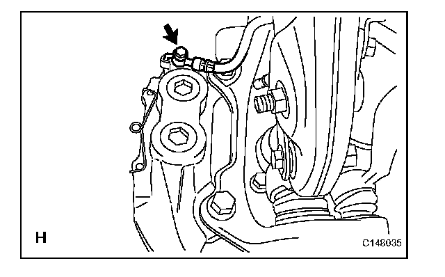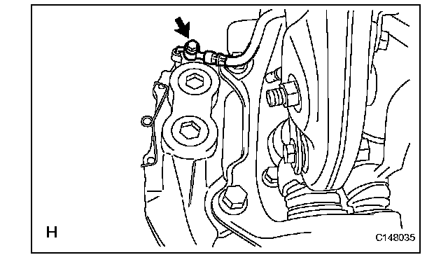 (2) Detach the clamp (labeled B) and bleeder plug cap (labeled C).