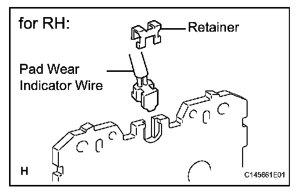 (3) Remove the retainer and pad wear indicator wire from the inner pad.
