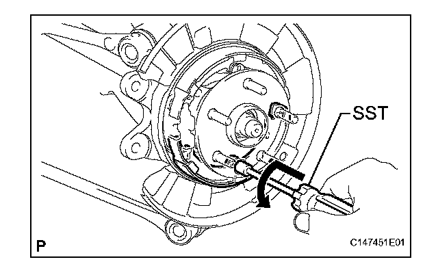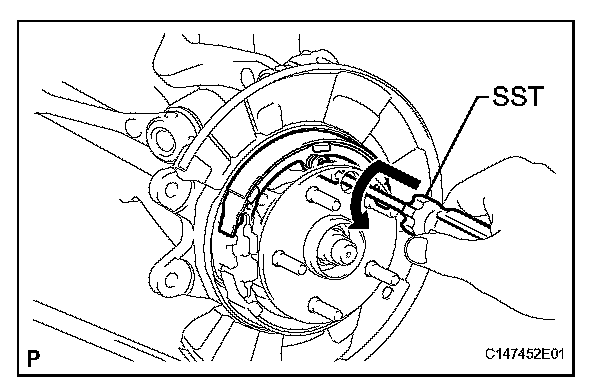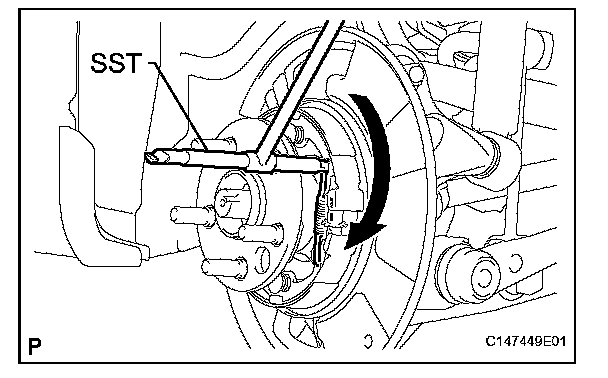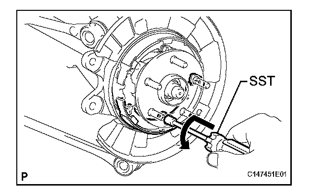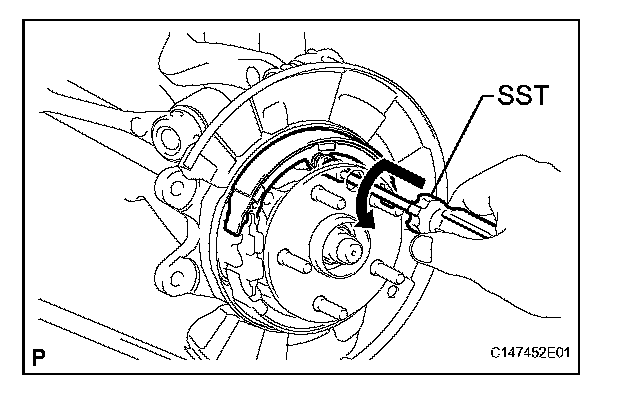 (a) Using SST, remove the shoe return spring.