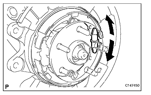 (b) Adjust the parking brake shoe clearance.