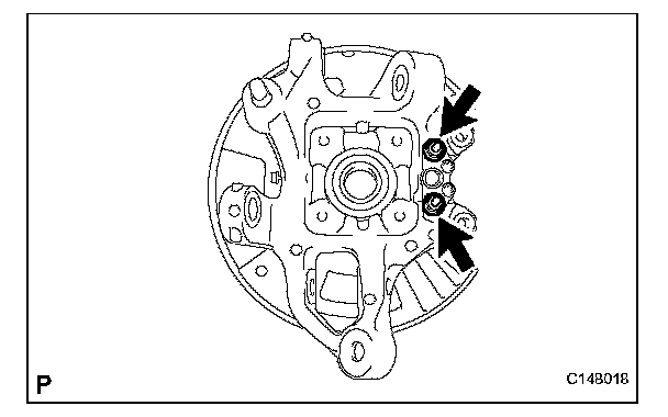 (a) Remove the 2 bolts and disconnect the rear disc brake caliper.
