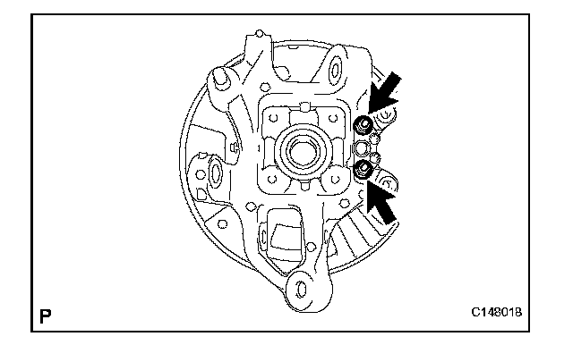 (a) Using SST, remove the No. 2 shoe hold down spring cup, No. 2 compression spring and No. 1 shoe hold down spring pin.