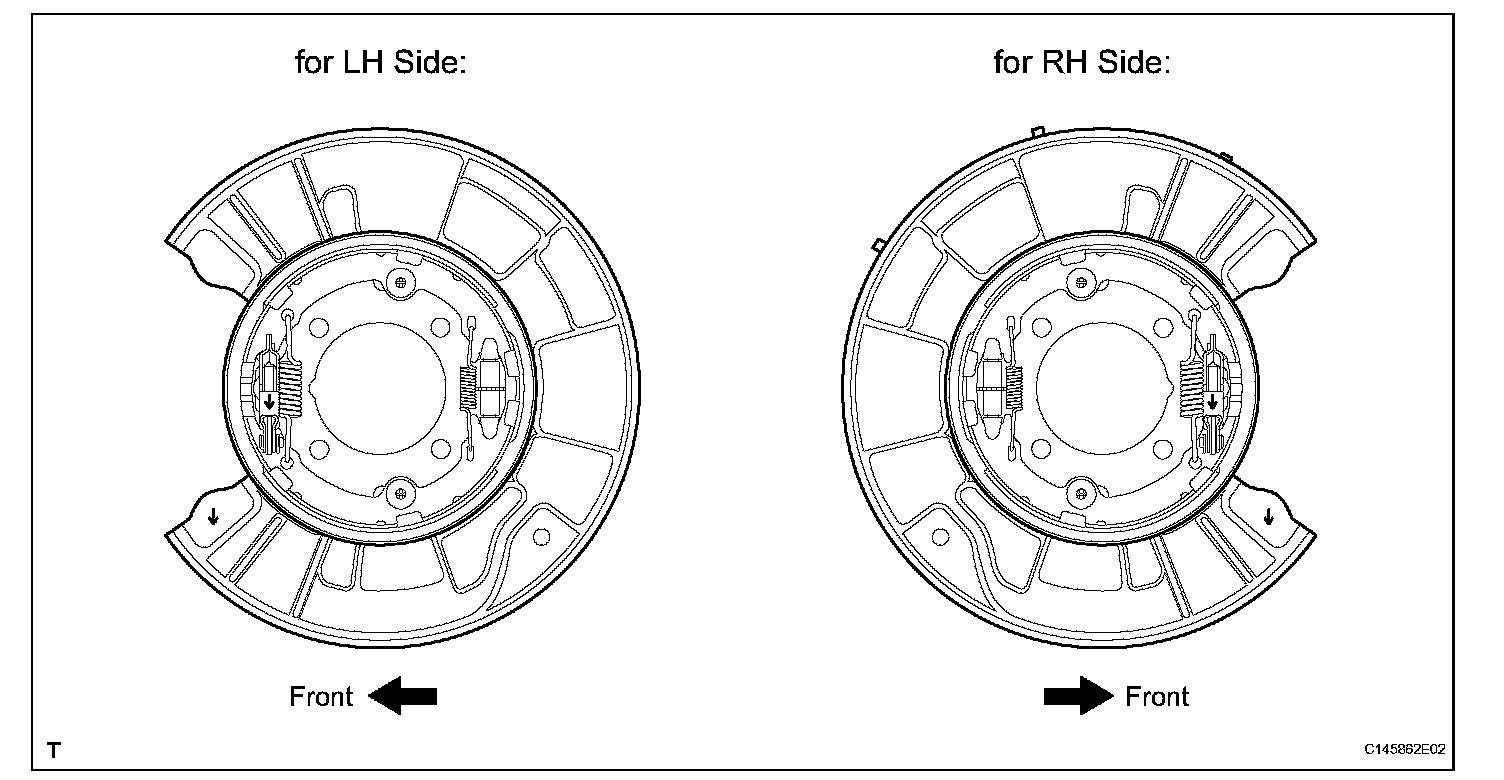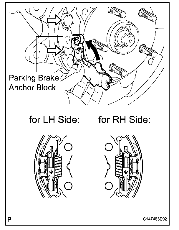 NOTICE: Take care to install the correct parking brake shoe lever because the direction of the pin is different between the left and right.