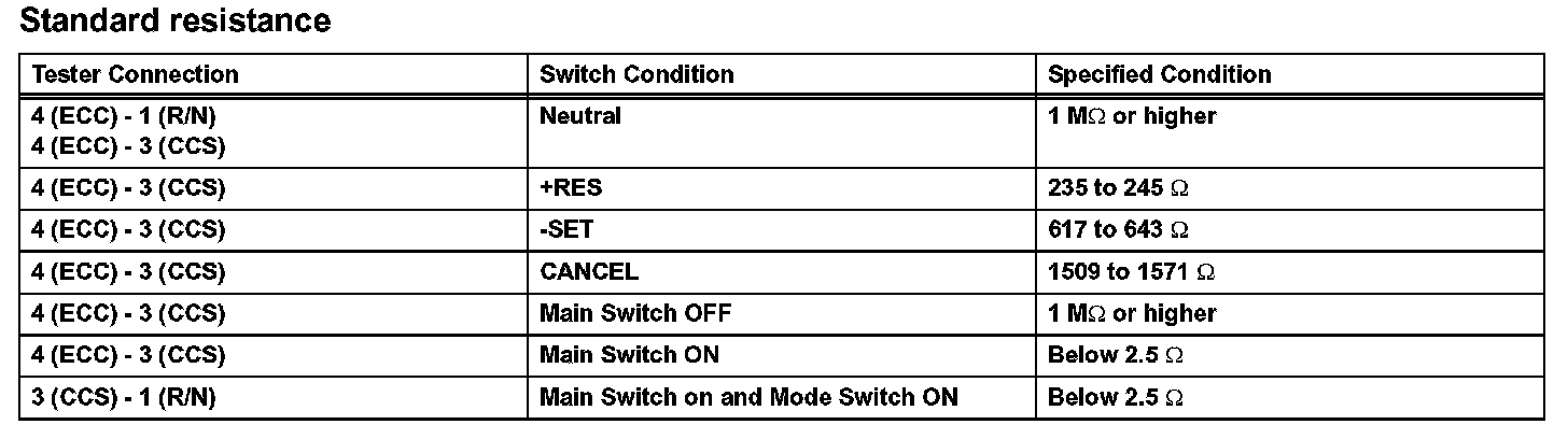 INSPECT CRUISE CONTROL MAIN SWITCH ASSEMBLY