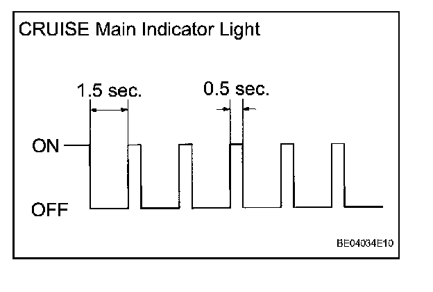 b. Check that the CRUISE main indicator light turns on when the cruise control switch is turned ON, and that the indicator light turns off when the main switch is turned OFF.