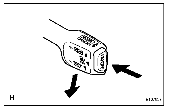 d. Check that vehicle speed increases while the cruise control switch is pushed to RES/ACC, and that the vehicle cruises at the set speed when the released.