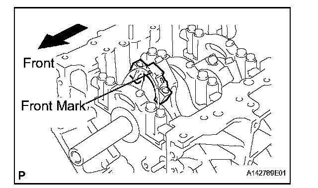 (f) Check that the front mark of the connecting rod cap is facing forward.