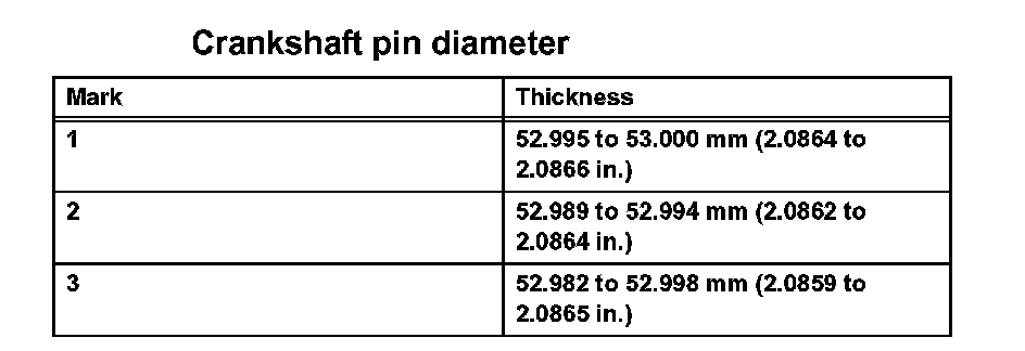 Crankshaft pin diameter: