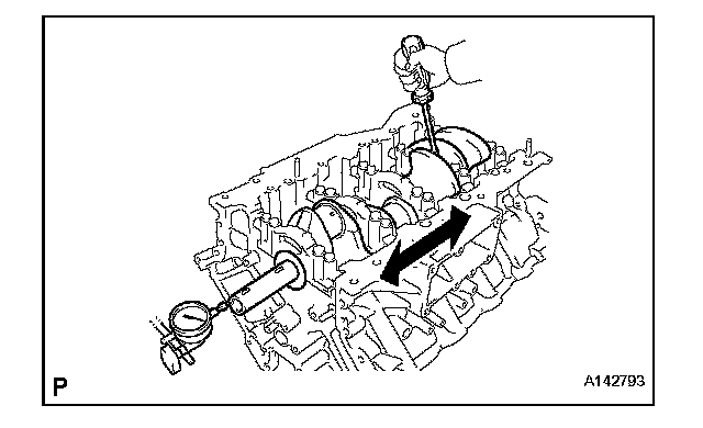 (a) Using a dial indicator, measure the thrust clearance while prying the crankshaft back and forth with a screwdriver.