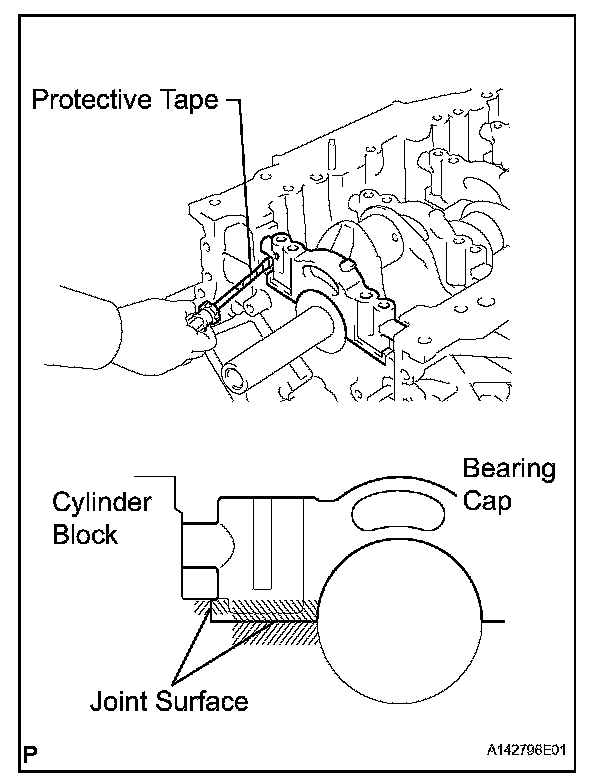 ^ Be careful not to damage the joint surface of the cylinder block and main bearing caps.